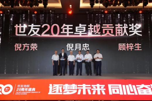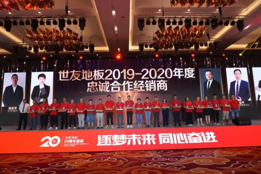 2021年6月17日,以“逐夢未來·同心奮進”為主題的世友地板20周年盛典在浙江湖州龍之夢鉆石酒店盛大舉行。政府領(lǐng)導、行業(yè)專家、業(yè)內(nèi)外大咖、全國主流媒體、世友全國各地經(jīng)銷商們、合作伙伴等2000多人,匯聚太湖風景名勝區(qū),一起回顧二十寒暑的發(fā)展歷程與企業(yè)榮光,共謀下一個時代宏圖。